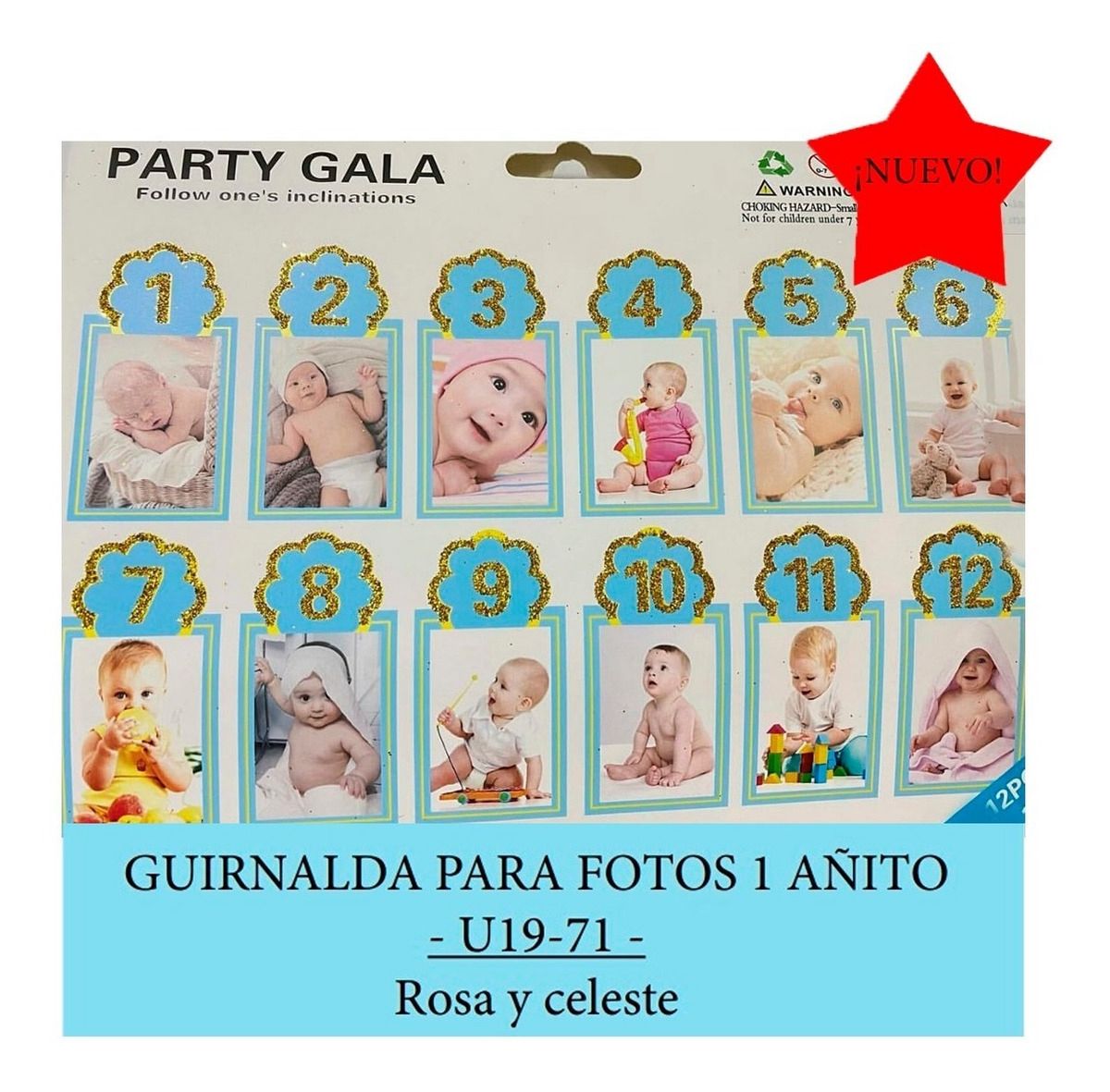 Banner / Álbum de fotos para bebé 12 Meses – Celeste