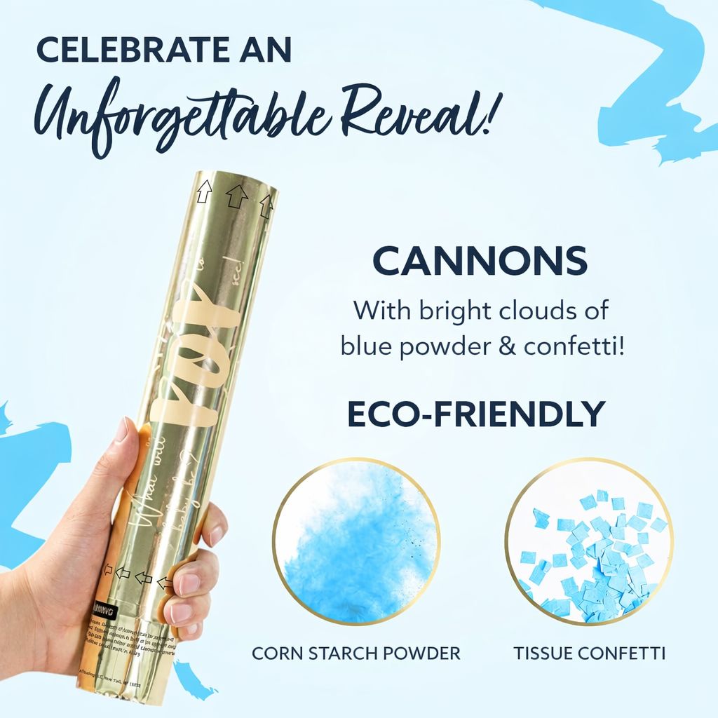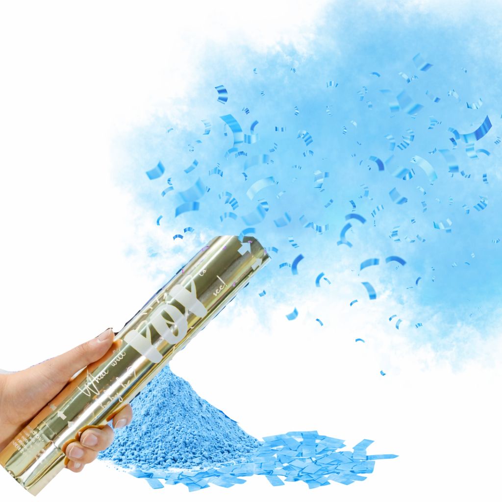 Lanza Humo / Papel Celeste – Cañón de polvo de confeti – Popper para Revelación de Género