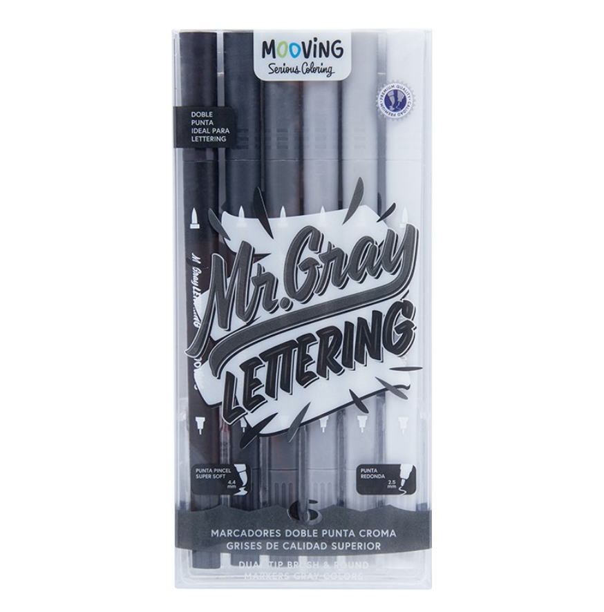 Mooving marcador lettering brush doble punta (estuche de 6 unidades)