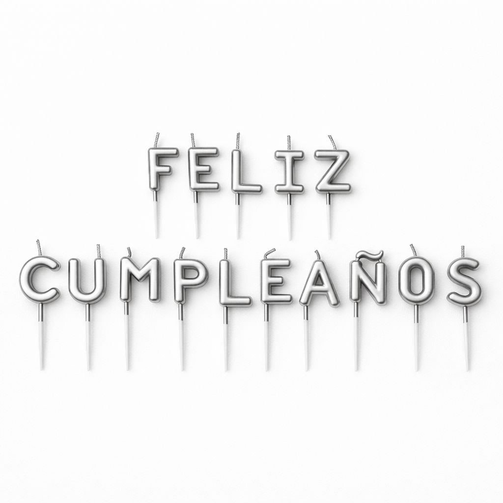 Vela de letras ” Feliz Cumpleaños” en color plateado. Ideal para Festejos de Cumpleaños.