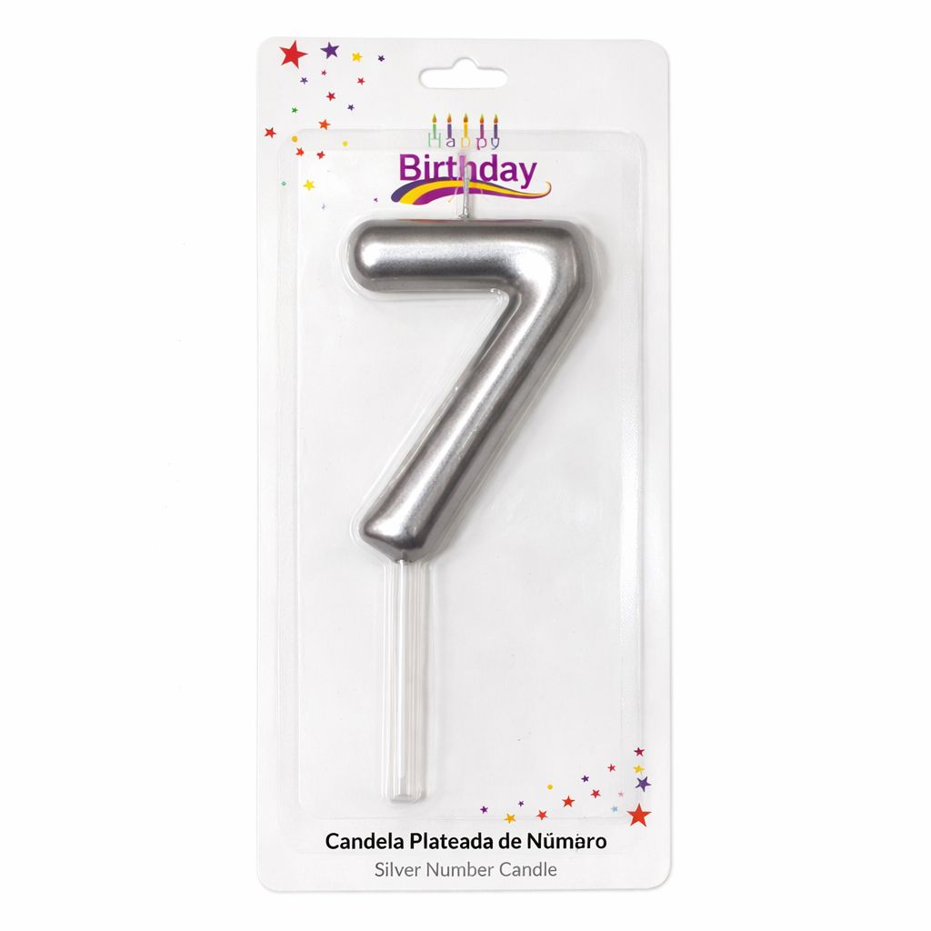 COMPRARVela Topper de color Plata en Número 7, en tamaño de 9cm ideal para Cumpleaños y festejos.
